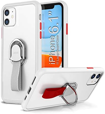 Thin Case For Iphone 11 With Finger Strap Holder Ring Loop Grip Hard Pc Back Tpu Bumper Shockproof Case Translucent Matte Finish Anti Scratch Protective Cover Case For Apple Iphone 11 White